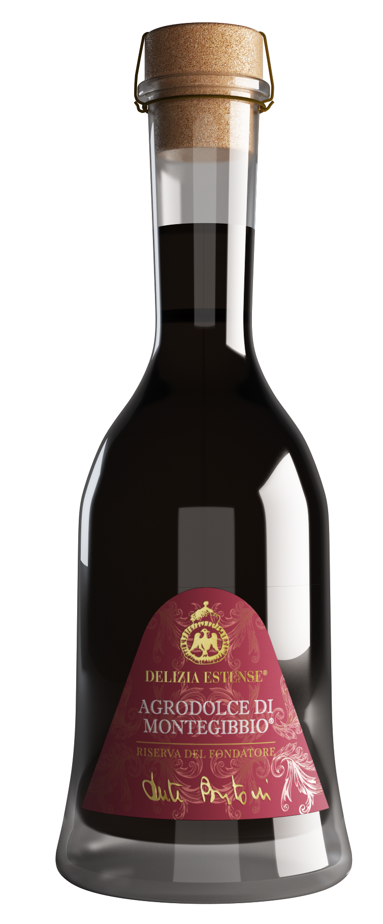 Aceto Balsamico di Modena IGP, ottenuto da una miscela di mosto d’uva cotto pregiato e aceto di vino di altissima qualità, è maturato in barriques e in botti di legni diversi. Gradevole, leggermente aromatico, armonico, delizioso.